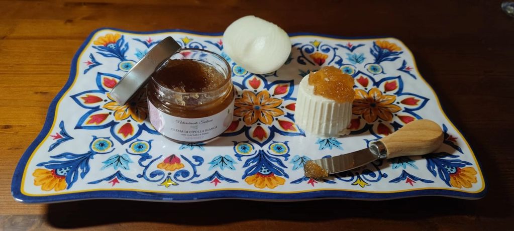 La nostra crema di cipolle BIANCHE è insuperabile se accompagnata da ricotta, formaggi molli o stracchino di caprino. Il Marsala, il timo fresco e lo zucchero di canna mantecano la cipolla per almeno 12 ore . Quindi, con la cottura a bassa temperatura (sottovuoto) la cipolla diventa un tutt'uno con I suoi ingredienti. Per 100 gr di crema di cipolla utilizziamo 130